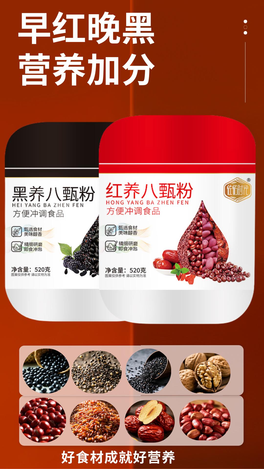 520克*2桶装(红黑各1桶)黑芝麻核桃黑豆营养即食早餐谷物代餐粉