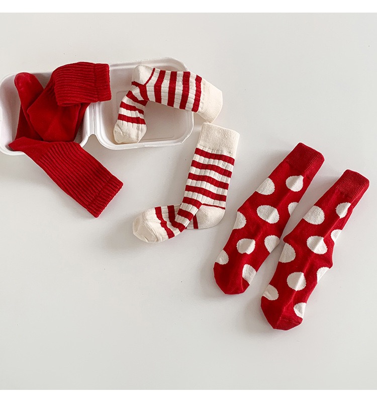 童袜 3双套装 a类棉袜 红色袜子中小童女童秋冬本命年新年中筒儿童袜子