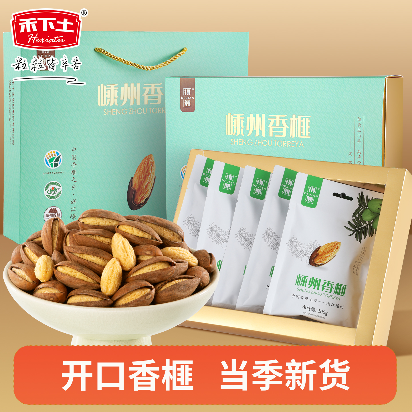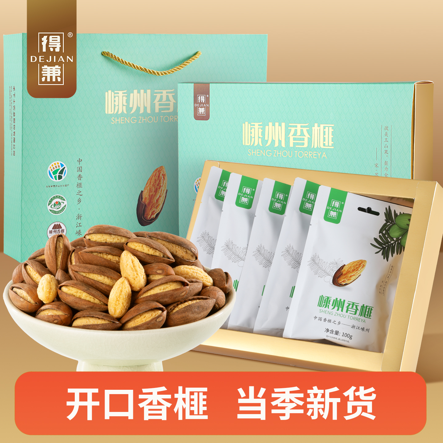 得兼开口壳薄肉厚好剥100g*5袋装礼盒嵊州香榧