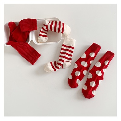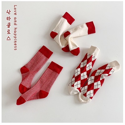 童袜 3双套装 a类棉袜 红色袜子中小童...